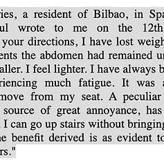 Madame d'Aries of Spain used the carnivore diet for obesity. "Following your directions, I have lost weight. Since my last two confinements the abdomen had remained unduly large: it is now much smaller. I feel lighter."